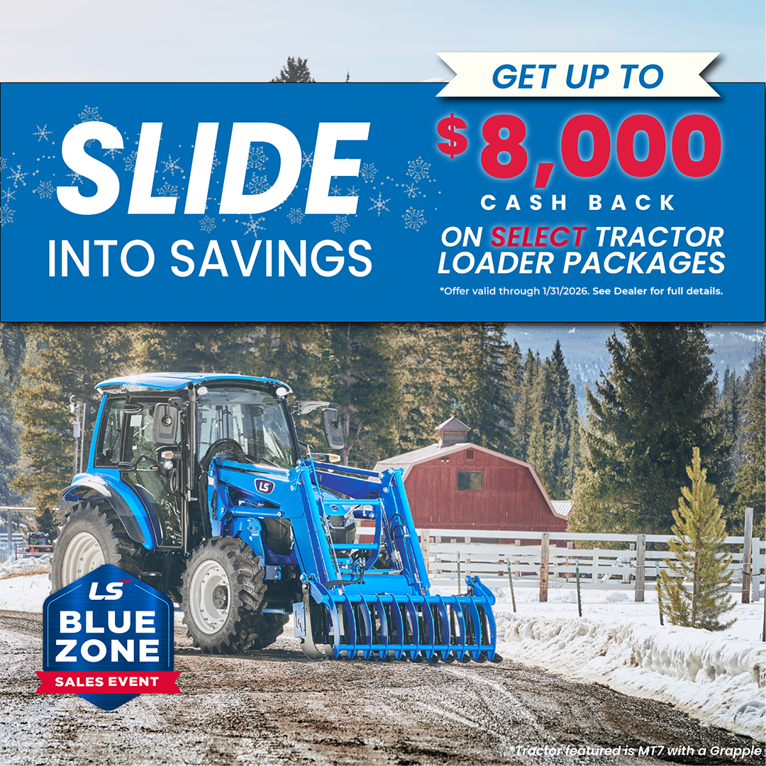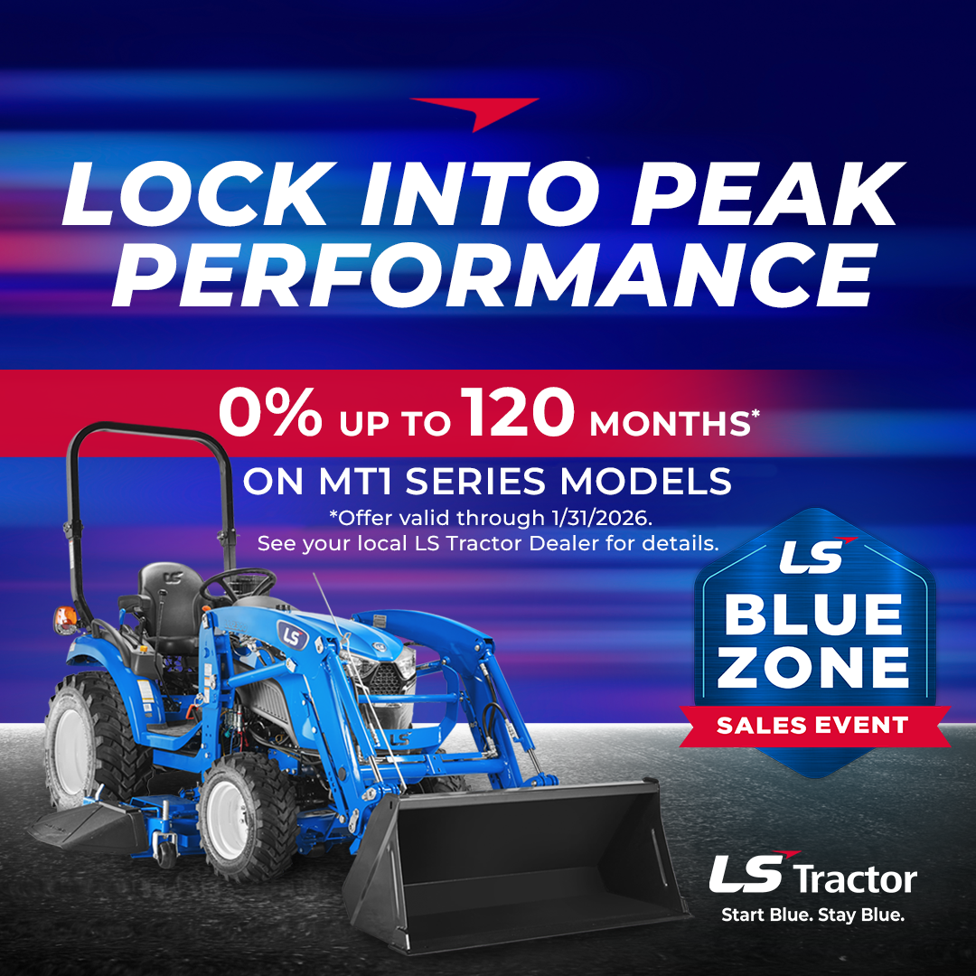 Enjoy 0% financing for up to 120 months on MT1 models (for a limited time).Don’t miss this opportunity to upgrade your homestead with affordability and ease. Hurry, this offer won’t last long—equip yourself with the best, for less! ◆ Maximum financed amount for low rate programs is 95% of MSRP for LS-branded serialized items. Amounts above maximum will require down payment. ◆ Non-LS equipment, including trailers, is excluded from low-rate financing. ◆ Programs do not have a minimum financed amount. ◆ LS mid-mount mowers, backhoes, snow blowers, and other LS invoiced equipment may be financed with a qualifying tractor at the same rate and term as the tractor. Standalone attachments and implements do not qualify for subsidized finance offerings.